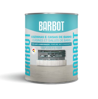 Tinta aquosa mate acrílica, para a pintura de paredes interiores em cozinhas, casas de banho e zonas húmidas
