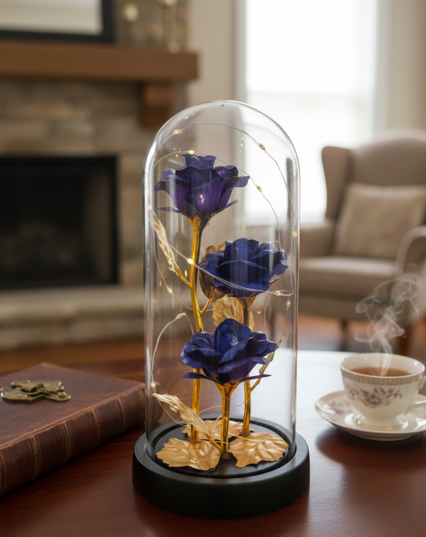 Luminária Redoma «A Bela e a Fera» (Rosas Azuis)