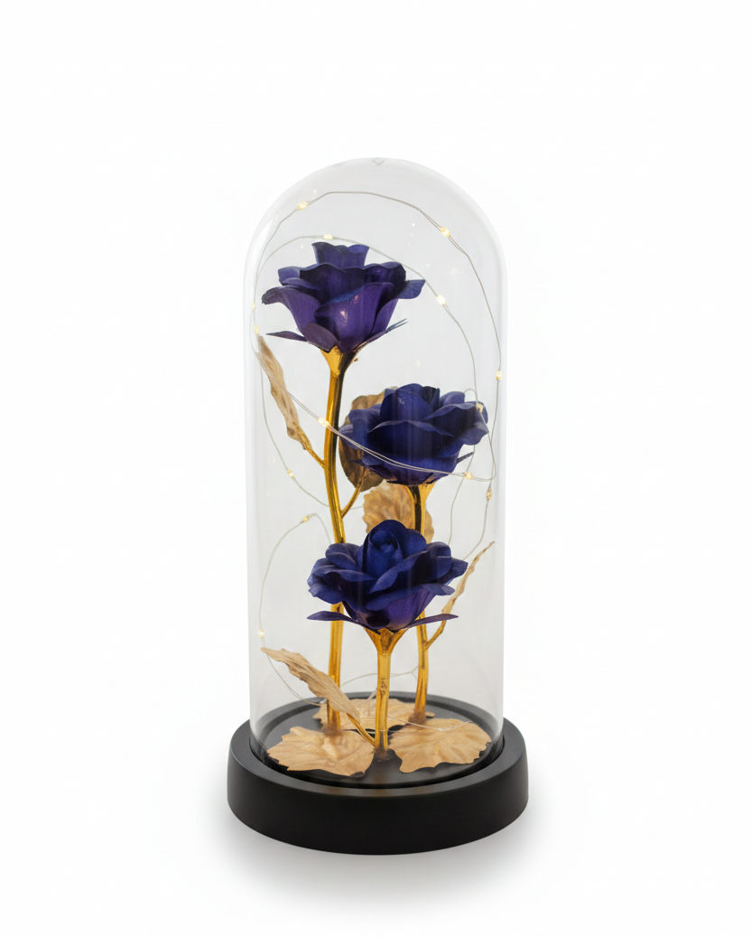 Disculpa, pero esta entrada está disponible sólo en Português.Encante seu ambiente com a Luminária de Rosas Azuis na Redoma de Vidro. Inspirada em contos de fadas, esta peça apresenta três rosas azuis metálicas detalhadas com folhagens douradas, envoltas por delicadas luzes de LED "fairy lights". É a escolha ideal para criar uma iluminação suave e romântica em quartos ou salas.Características: Composição: Redoma em vidro cristalino e base em ABS resistente de cor preta.Iluminação: Fio de fada em...