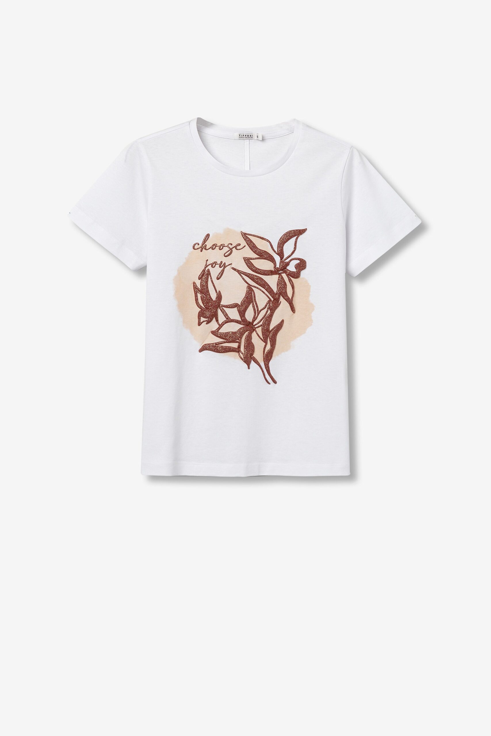 T-shirt com Estampado Frontal com Relevo Brilhante