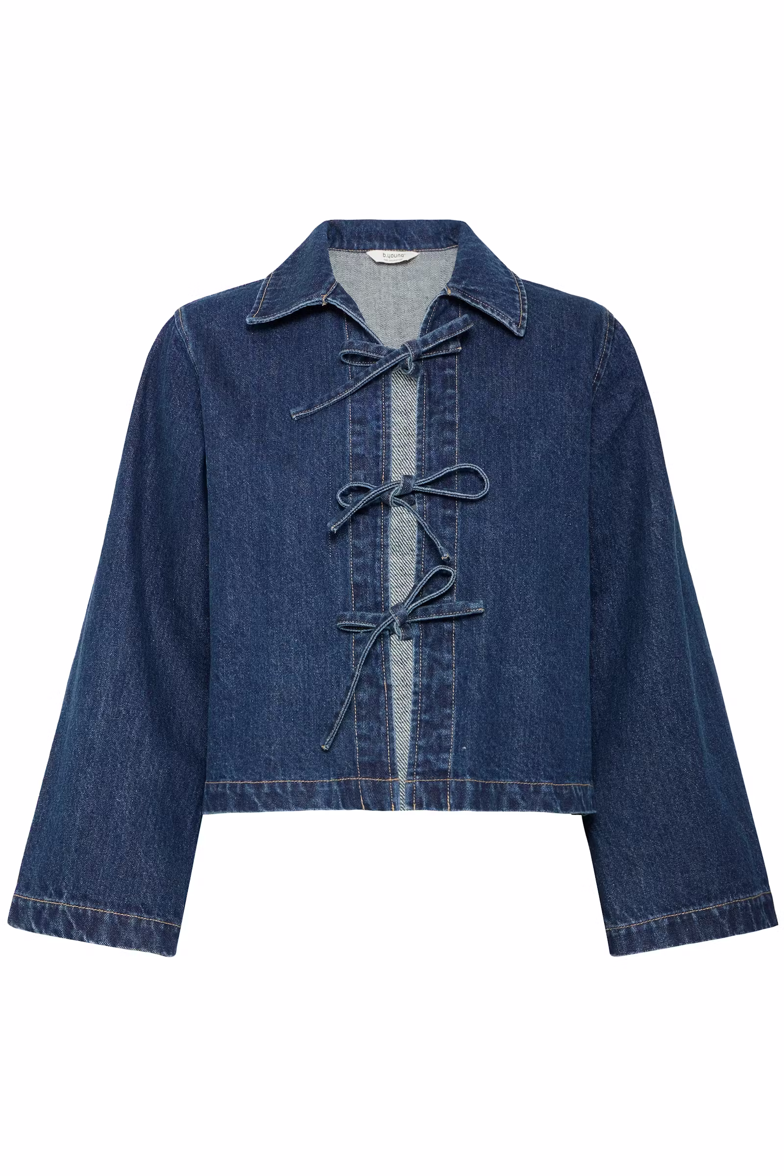 Descubra um estilo descontraído com este casaco de ganga de corte relaxado, com uma silhueta curta, fechos com laços na frente e mangas largas para um conforto diário. Uma versão moderna de um clássico, perfeita para looks versáteis em camadas.