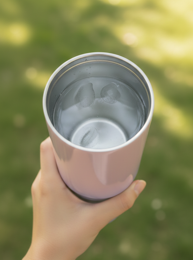 Copo térmico portátil com parede dupla e isolamento a vácuo, ideal para manter suas bebidas na temperatura ideal por muito mais tempo.