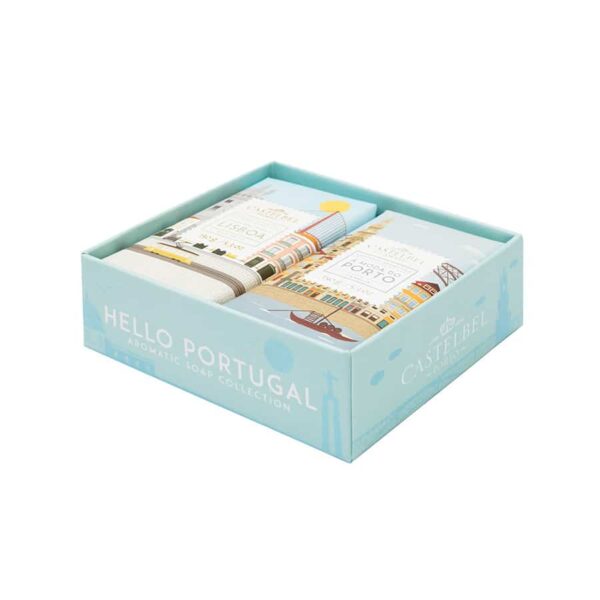 Tenha um pedacinho de Portugal com este conjunto de dois sabonetes embrulhados à mão e acondicionados numa caixa-presente. Este conjunto é composto pelo sabonete dedicado à nossa capital, Cheira Bem, Cheira a Lisboa, e pelo sabonete À Moda do Porto, um tributo à cidade invicta. Perfeito para oferecer a quem mais gosta ou para guardar como souvenir perfumado!