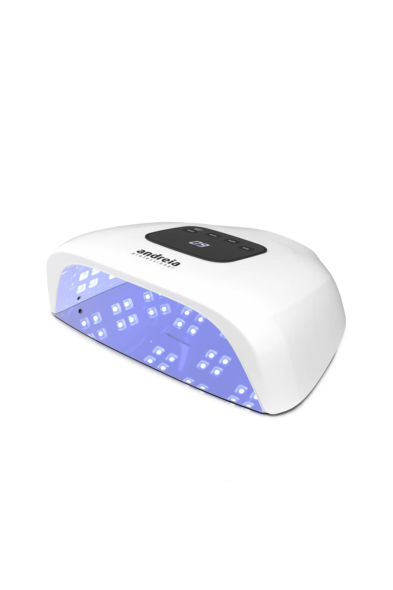 Lâmpada LED de uso profissional que catalisa adequadamente produtos de unhas LED e UV. A sua base removível, possibilita a realização de manicures e pedicures.Ao colocar a mão/pé no interior, o sensor de movimento fará com que a lâmpada se ligue automaticamente.O temporizador digital (10, 30 ou 60 segundos) permite controlar cuidadosamente o tempo de catalisação, e o modo Low Heat (baixo calor) garante um processo de catalisação progressivo, mais adequado para clientes sensíveis...